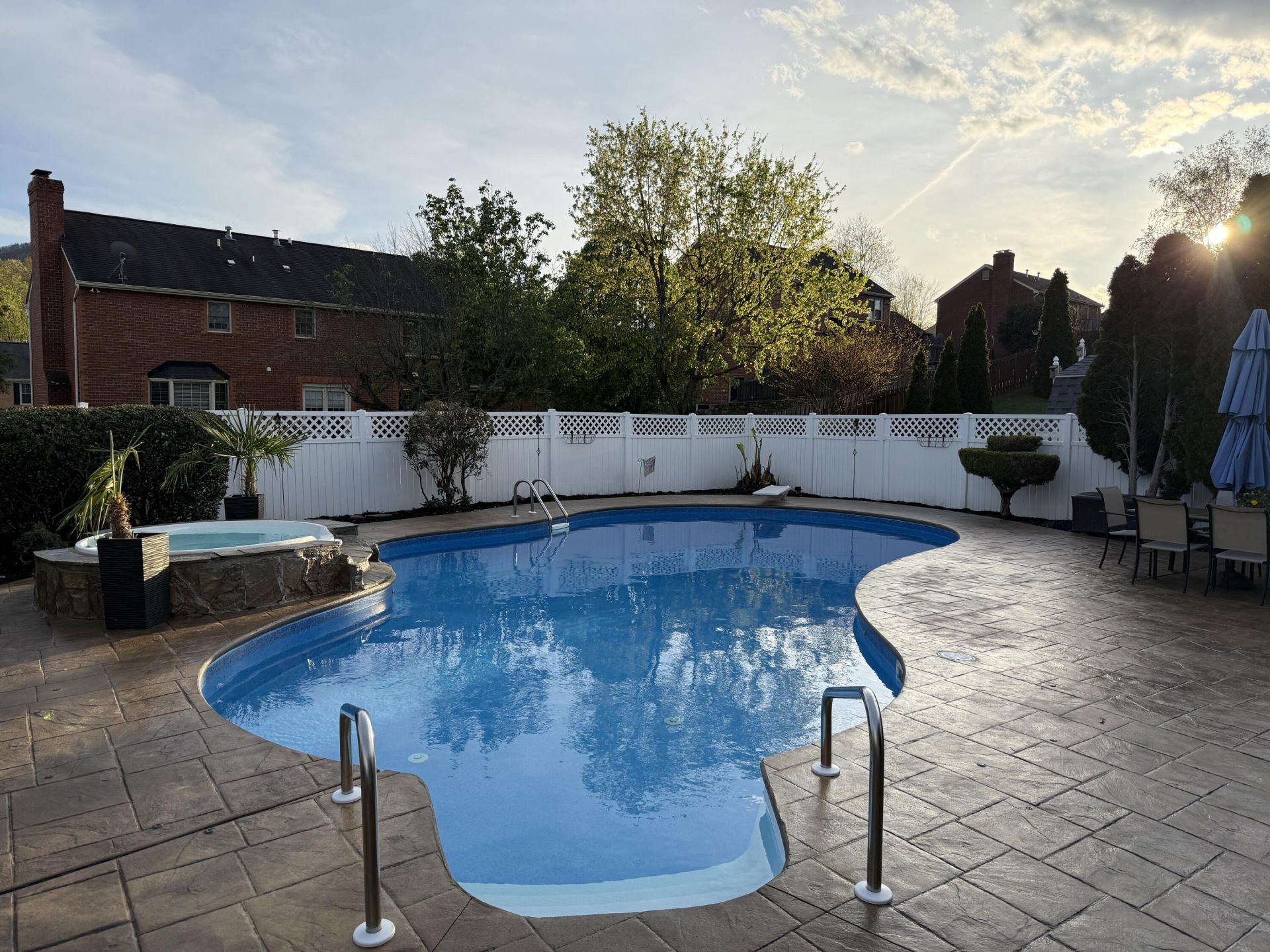 Beautiful Home with Saltwater Pool, Hot, Tub & Modern Upgrades! This home blends comfort, style, and functionality. With a saltwater pool and hot tub, this backyard is perfect for entertaining or unwinding in your own retreat. Inside, there is luxury vinyl flooring on the main level and fresh carpet upstairs. The kitchen has been updated with new cabinets and granite counter tops. This spacious 4-bedroom home offers 3 full bathrooms, and 2 half baths. A sunroom adds the perfect touch for year-round enjoyment. The home features a 2-car garage, shed for additional storage, and both fireplaces have gas logs.Located in a desirable South Salem neighborhood with great curb appeal. Renovations include main water line (2019), new roof (2020), windows (2022), flooring, carpet, kitchen (